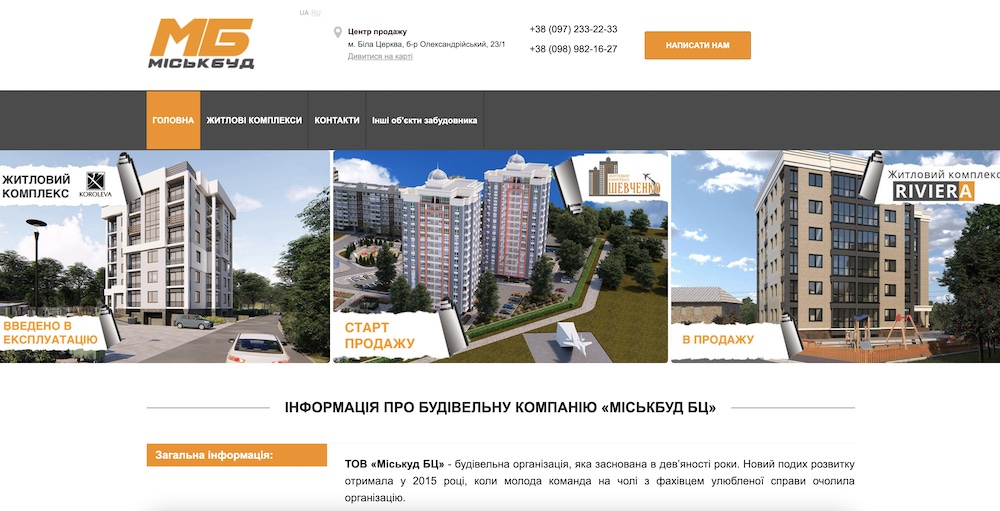 ТОВ «Міськбуд БЦ» - це сучасна, успішна будівельна компанія, яка займає лідируючу позицію, є одним з найбільших забудовників в місті Біла Церква та являється генпідрядником у всих наших проєктах.